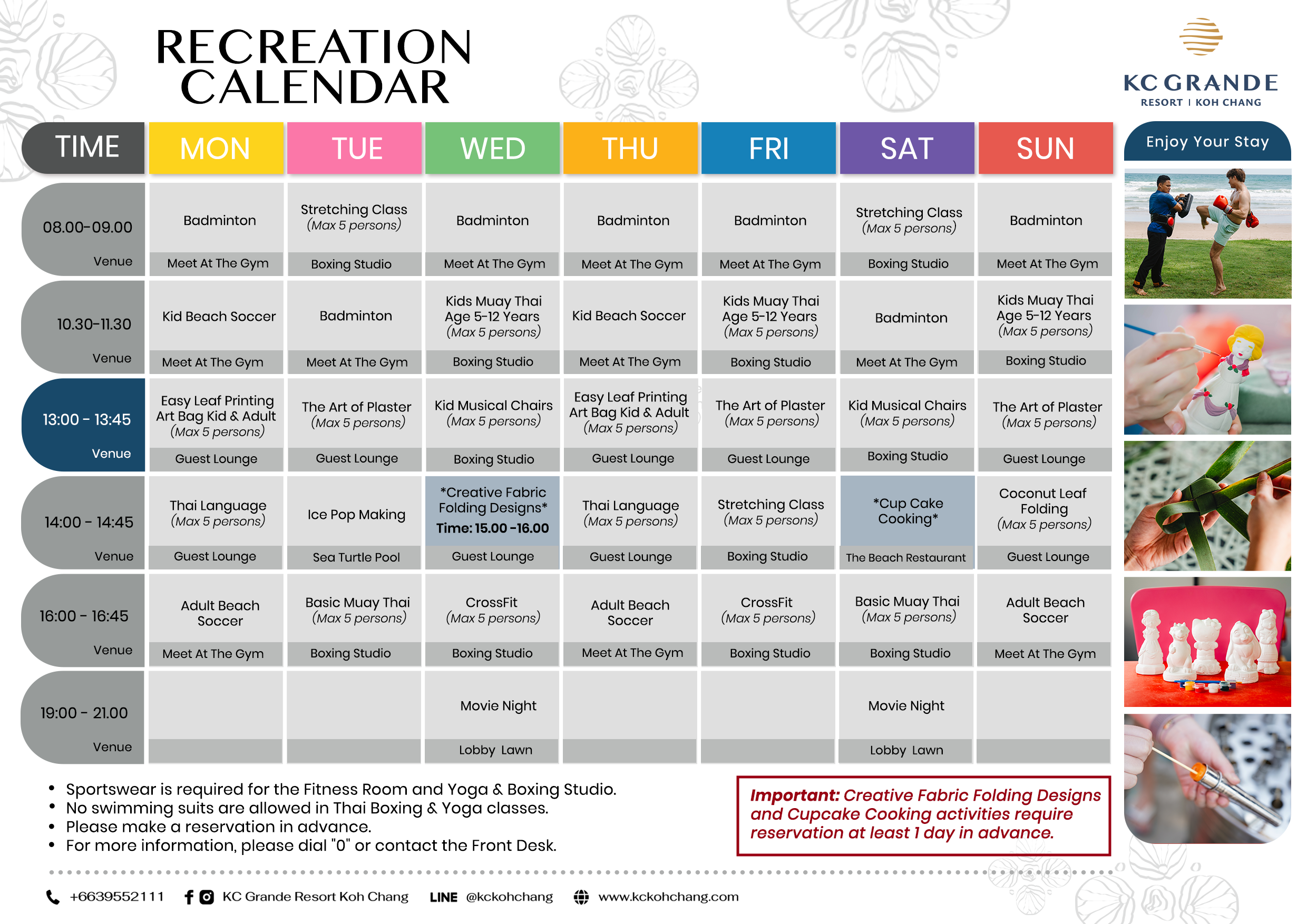 Our Yoga & Boxing Studio is equipped with a wall mirror to help you work out with a variety of activities to power up your strength, including a number of classes.