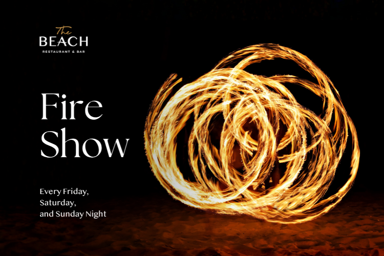 Enjoy a mesmerizing night by the beach with our stunning fire performance and relaxing live music. Experience the perfect blend of rhythm and light every Friday, Saturday & Sunday night at The Beach Restaurant.