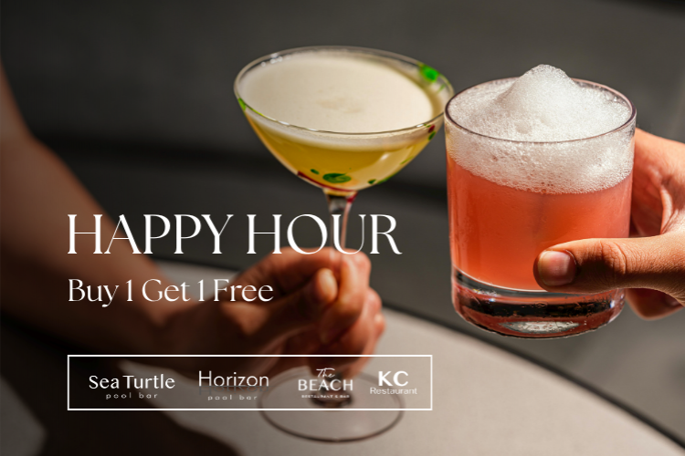 Sip, relax, and unwind with our refreshing cocktails at the best hours of the day. Enjoy your favorite drinks with a stunning sea view at our pool bars and restaurants.
